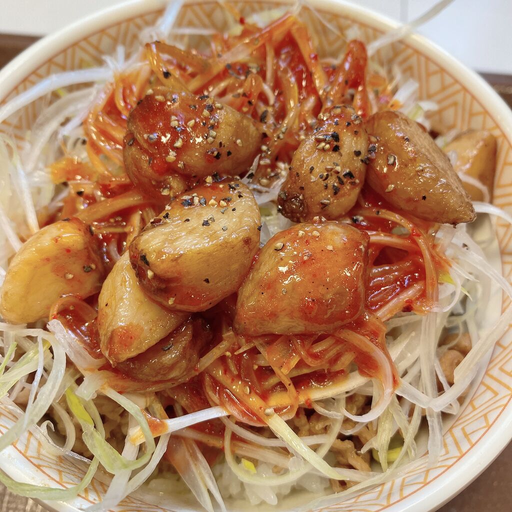 にんにく赤だれ白髪ねぎ牛丼