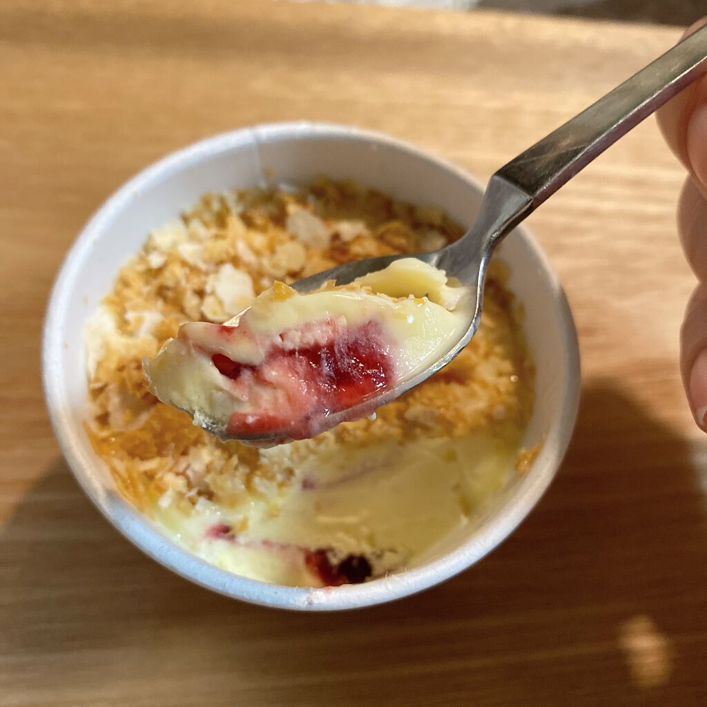 カスタードアイスといちごのソースが層になっていました。