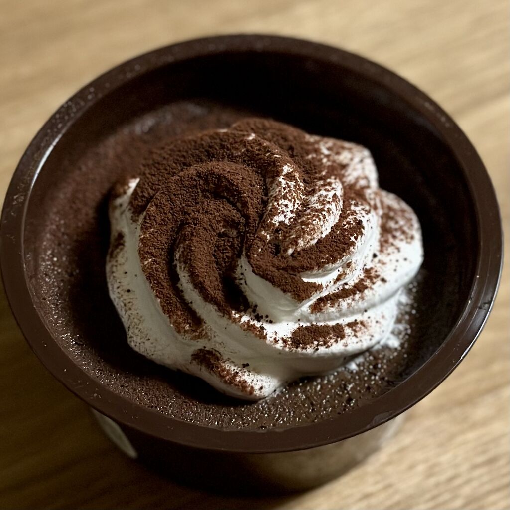 ホイップクリームにココアパウダーがかかっています。